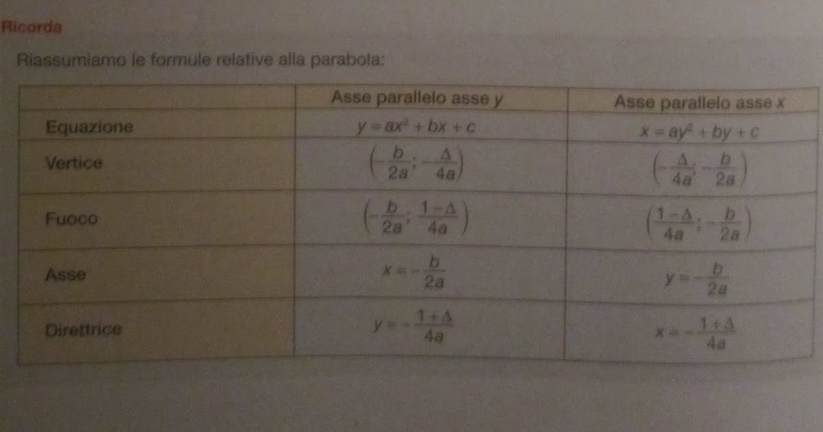 Asse Della Parabola Formula - A parabola is the set of points in a plane that are the same distance from a given point and a given line in that plane.