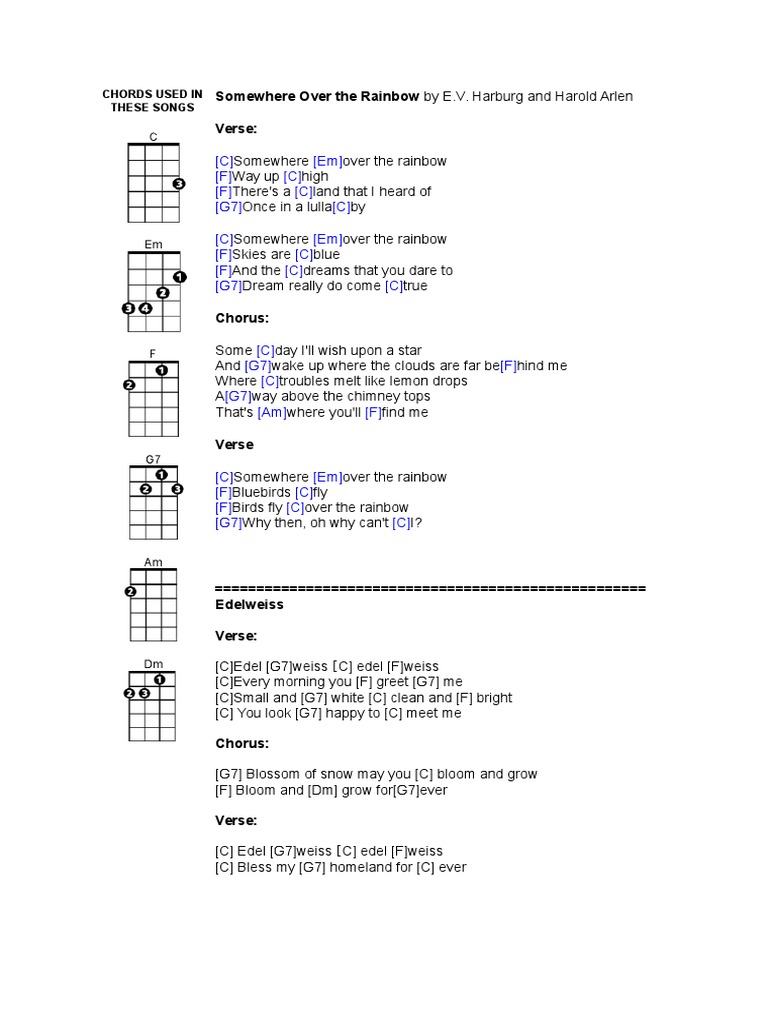 Somewhere Over The Rainbow Accordi Ukulele - G c the colours of the rainbow so pretty in the sky g c are also on the faces of people passing bye f c f c see friends shaking hands, saying 'how do you do?'