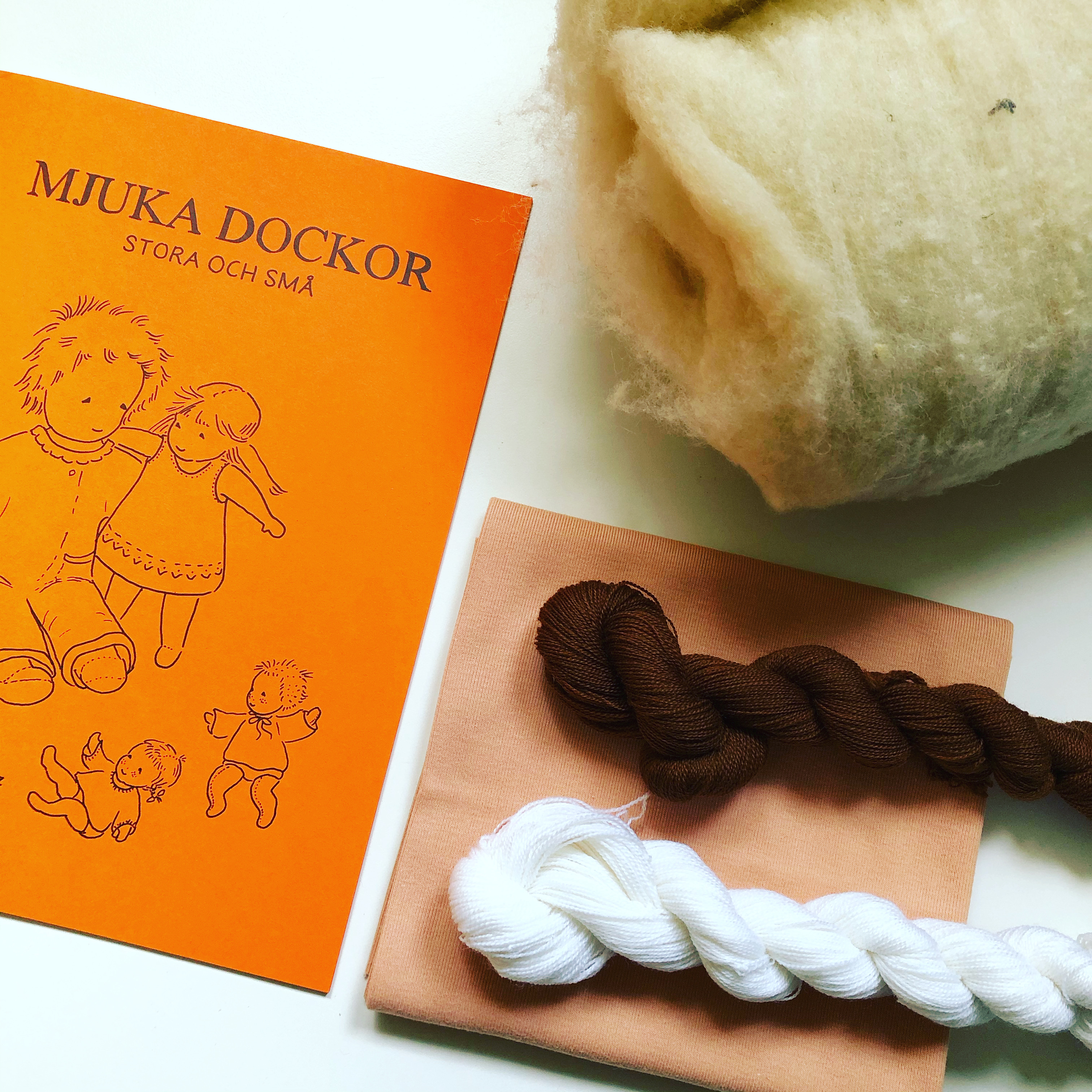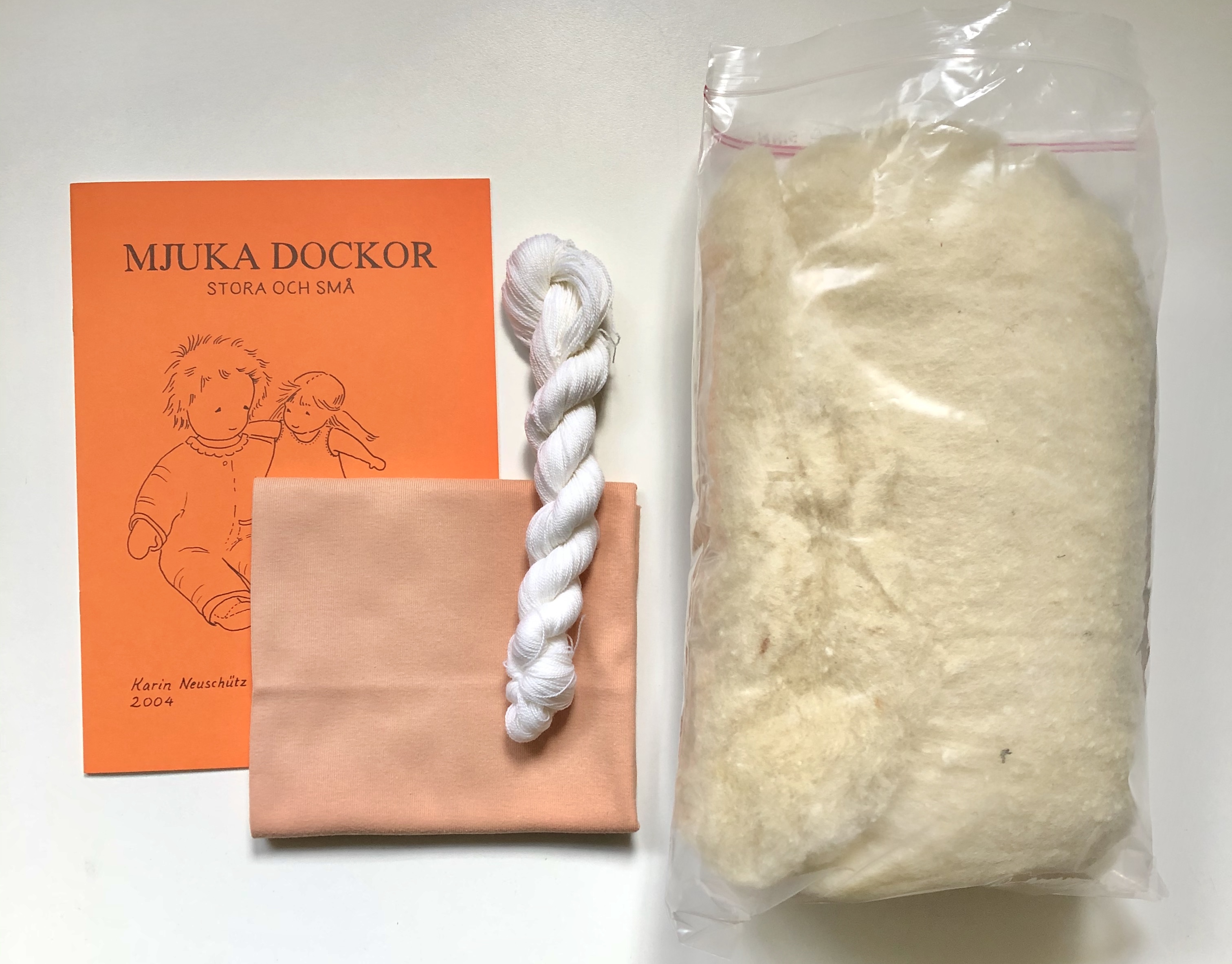 Waldorfdocka Material - Kropp, hår och kläder av 100% ekologisk bomull.